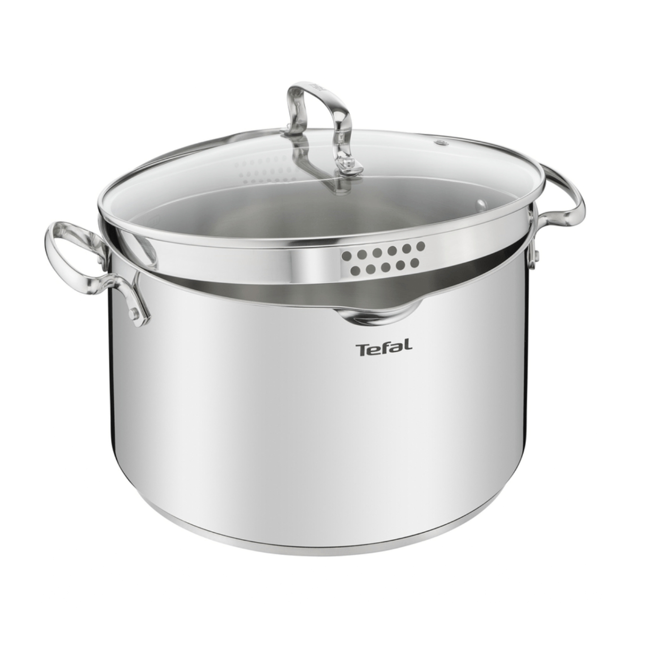 Olla 28 cm + tapa Duetto Tefal: Esta línea está fabricada en acero inoxidable 18/10 de alta calidad y tiene una garantía de 10 años. Su tapa inteligente te permite colar tus recetas de forma fácil y práctica